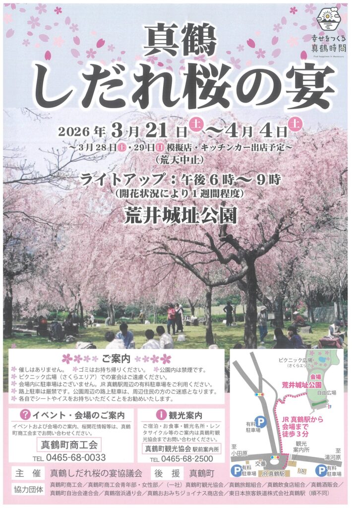 | 主催・問い合わせ:真鶴しだれ桜の宴協議会事務局(真鶴町商工会内) 0465-68-0033 |